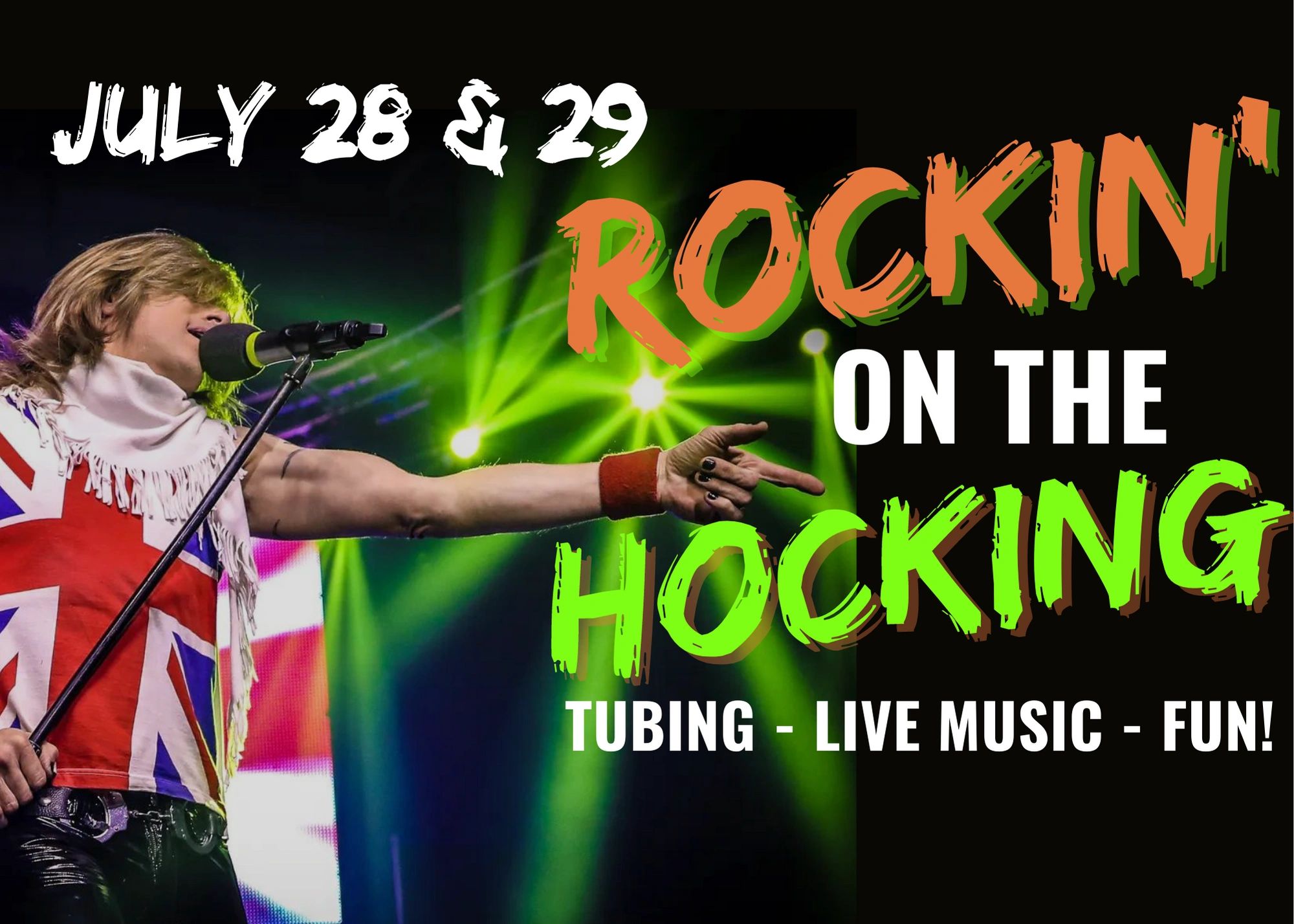 Are you ready to ROCK?! We’re going to be ROCKIN’ on the HOCKING July 12th and 13th! 2 DAYS to enjoy a leisurely float on the Hocking River & 2 Nights of Music at Hocking College!