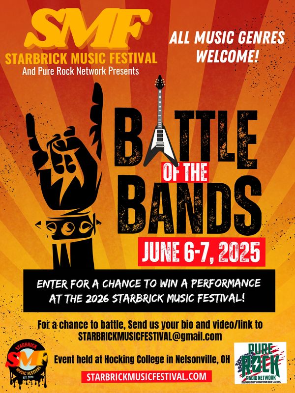 Pure Rock Stage Sponsors the stage. 5 Bands will battle for a chance to win a performance at our 2027 Starbrick Music Festival Campground Party!